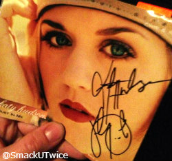 Katy stayed at the head of the line and one by one we filed down to meet her. It was requested that we either take a photo or get one autograph. I opted for an autograph as I already have a couple photos with her. I also brought a Katy Hudson CD single and thought that would be really cool to have autographed. :)